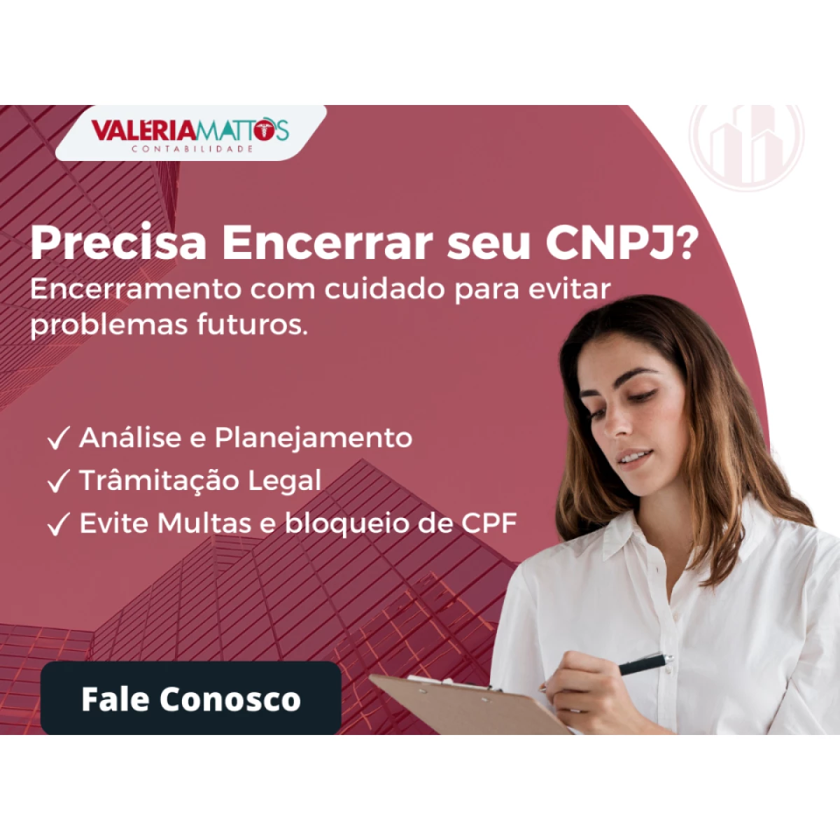 A Valéria Mattos Contabilidade tem a solução perfeita para você: o serviço de Encerramento de CNPJ. Chegou a hora de dizer adeus aos custos desnecessários e burocracias intermináveis.